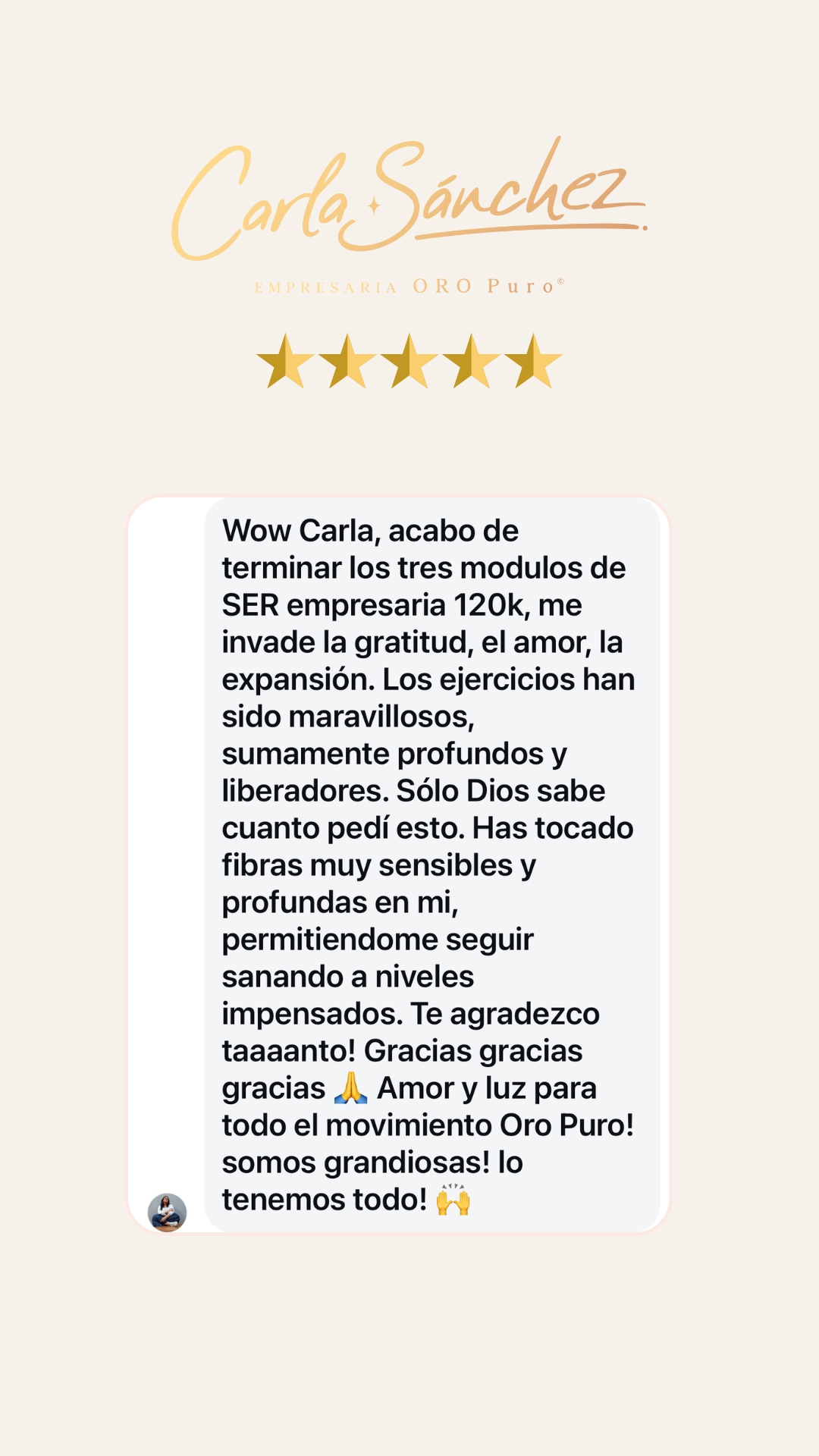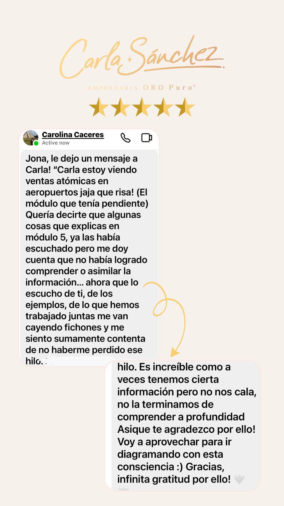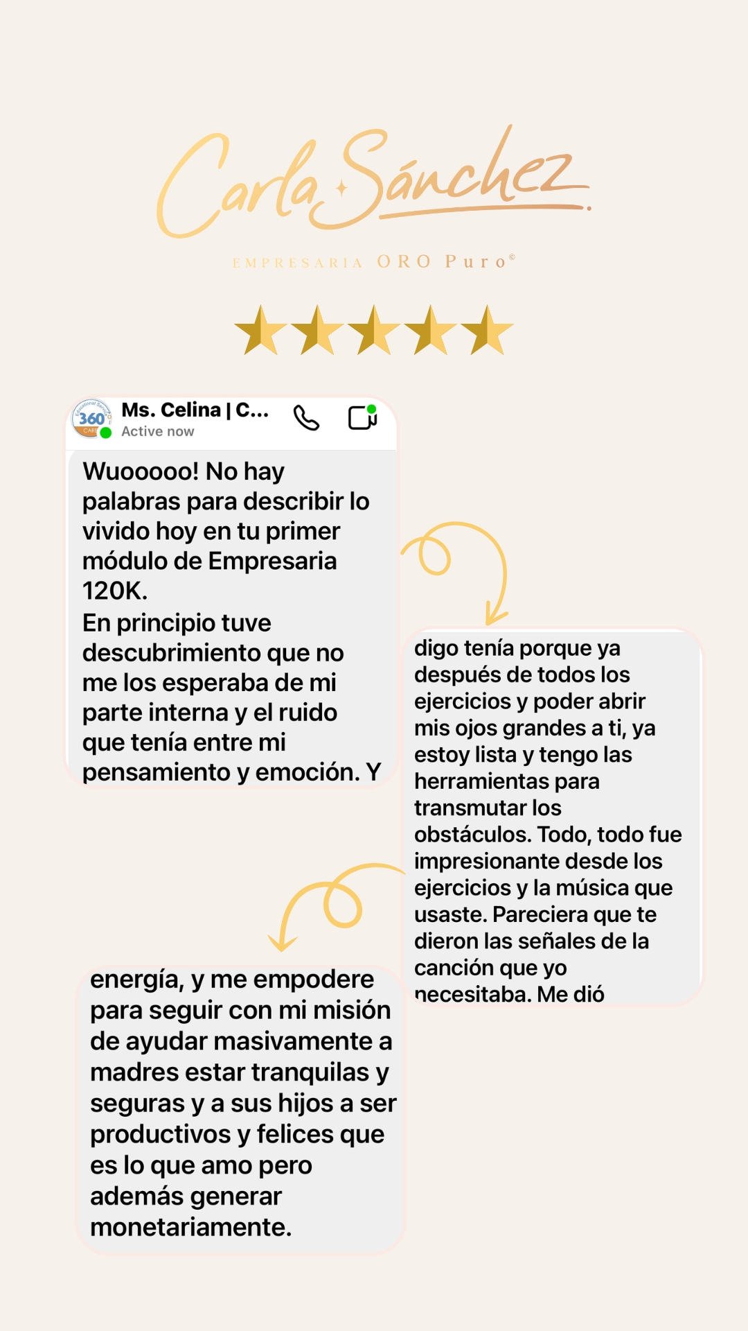 “Este proceso no solo cambió mi negocio, cambió mi mentalidad, mi relación con el dinero y mi legado. Gracias Carla por ser ese ORO y enseñarnos a brillar”
