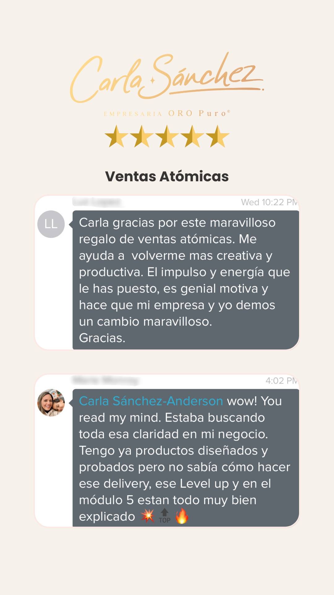 Te vas a rodear de una red muy poderosa de otras coaches, mentoras, terapeutas, consultoras y expertas que ya están creciendo, listas para dejar atrás la improvisación y expandir su negocio online al más alto nivel.